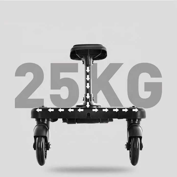 High Weight Limit: Designed to accommodate older toddlers or young children with ease, our Buggy Board is built to handle up to 25kg. It's sturdy and reliable, ensuring that it remains a valuable accessory as your child grows.